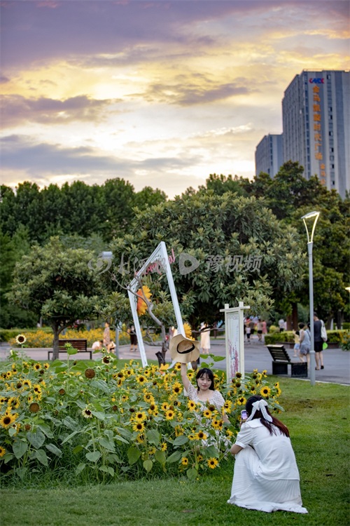 阴雨天气里一抹亮丽的色彩,郑州万株向日葵花开正艳