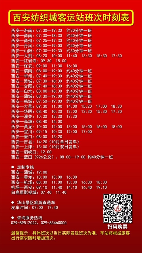 提醒!纺织城客运站最新班次时刻表