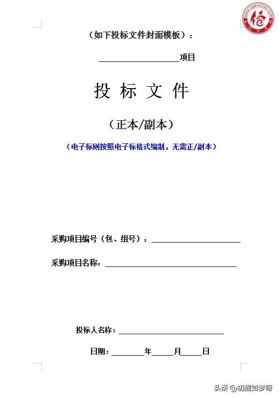 2、招标文件无要求的,参考招标文件封面格式,做到版面协调,字体和大小不超过两种。