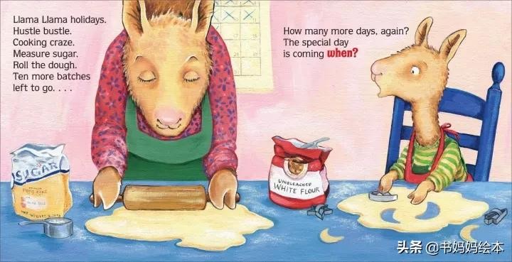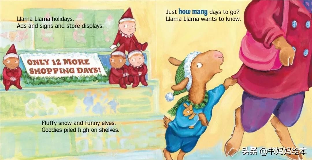 《Llama Llama Holiday Drama》讲的是圣诞快到了,小Llama和妈妈天天忙忙碌碌地为这一天做着准备,买礼物、做饼干、布置房子,等了这么久,圣诞怎么还没到,礼物怎么还没来!小Llama生气了!....