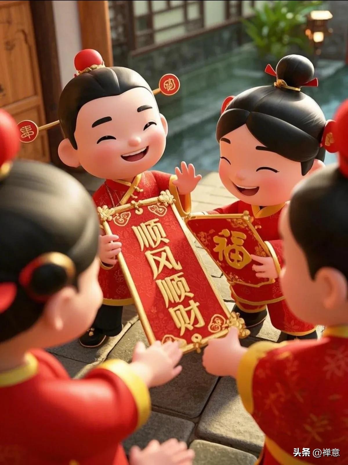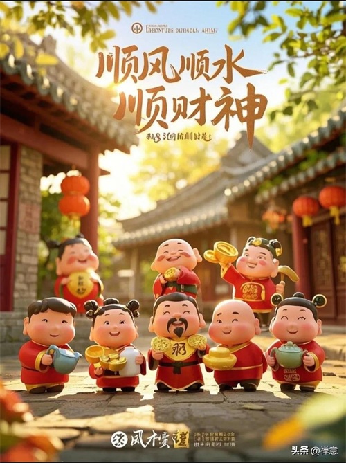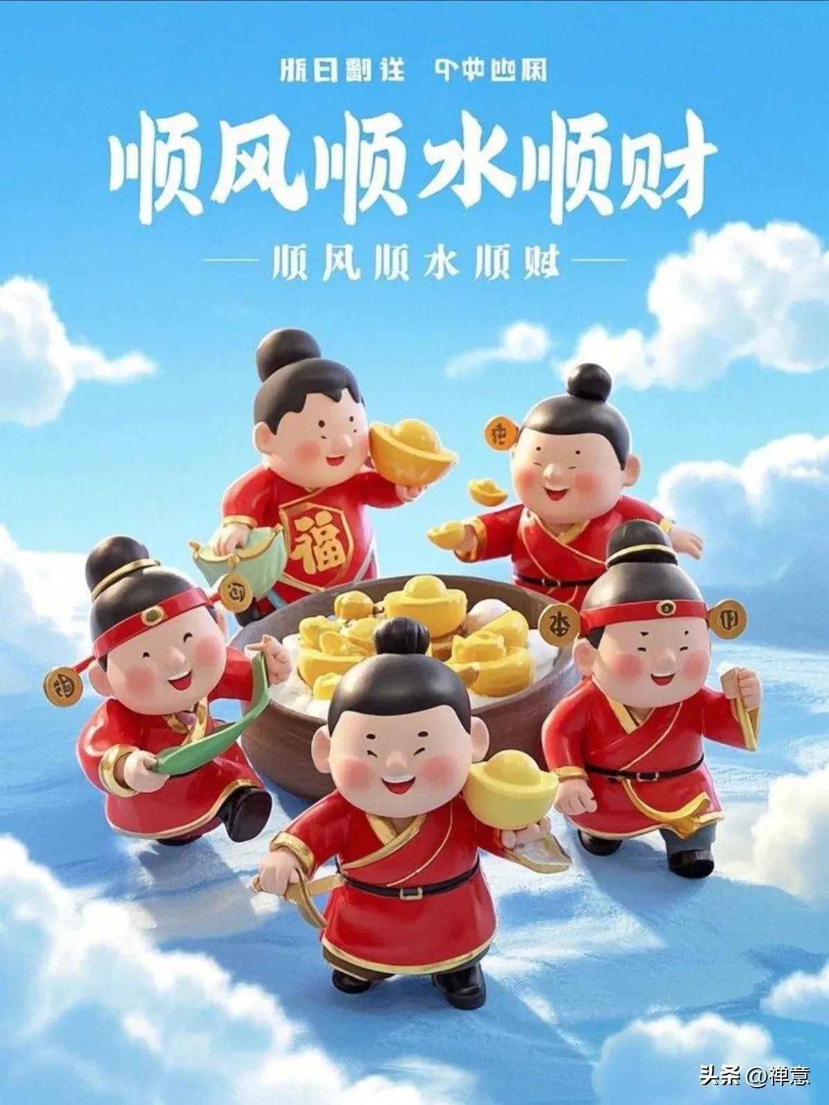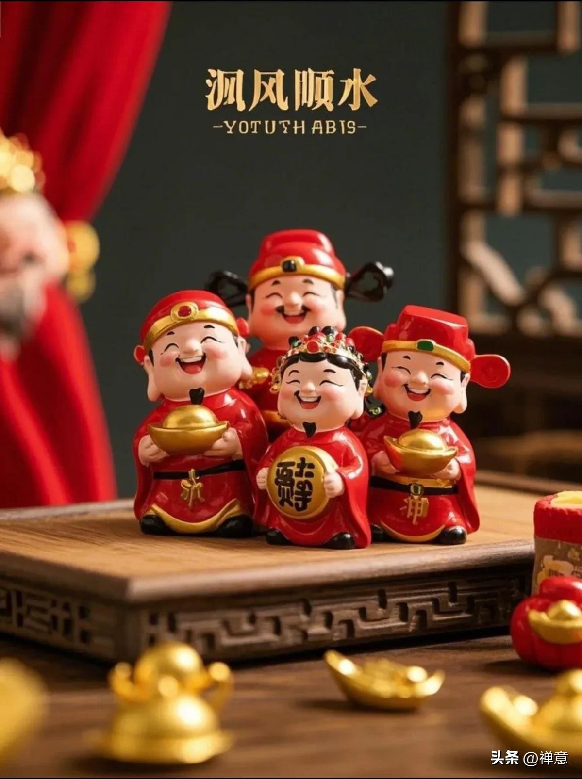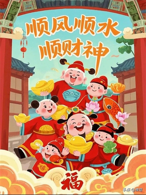 正月初四迎财神,财神携福至,福星紧相随,财富追着跑