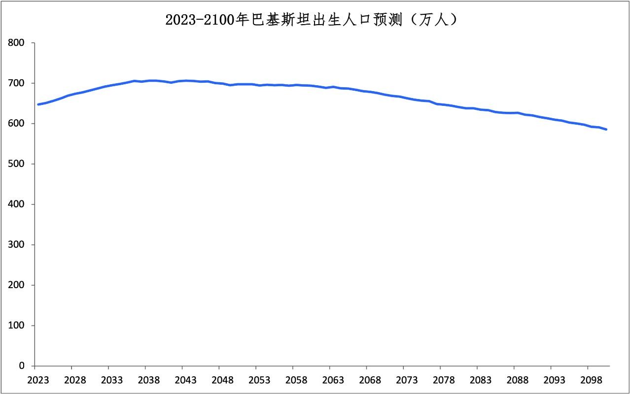 2023-2100年巴基斯坦出生人口预测如下图所示: