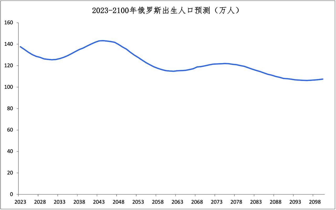 2022年俄罗斯出生人口为138万。下图是联合国对俄罗斯2023-2100年的出生人口预测: