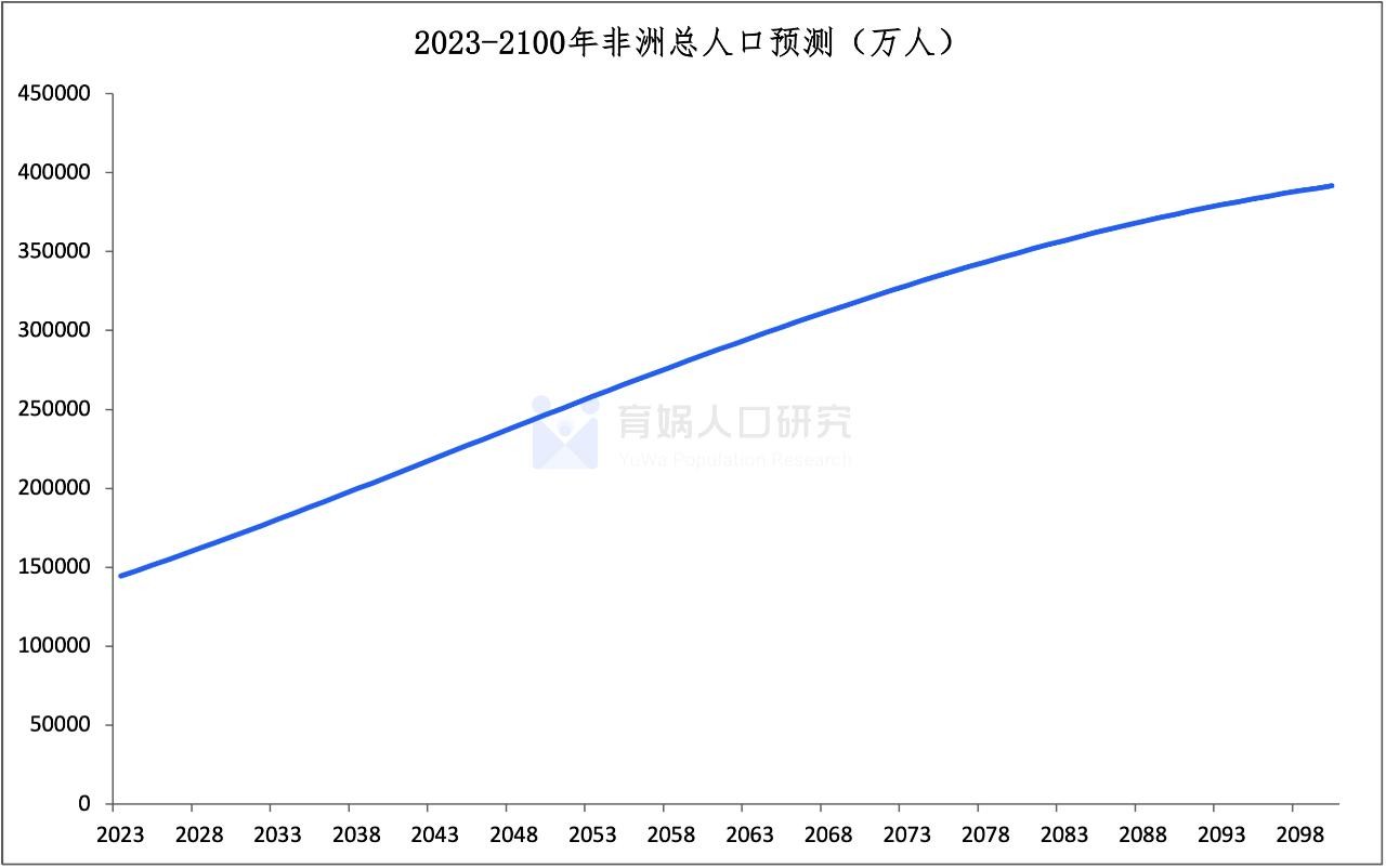 根据上述预测,2023年非洲总人口为14.4亿,占全球比例为18%,已经超过中国。从2023-2100年,非洲总人口逐年上升,到2100年上升至39.2亿,占全球比例上升到38%。