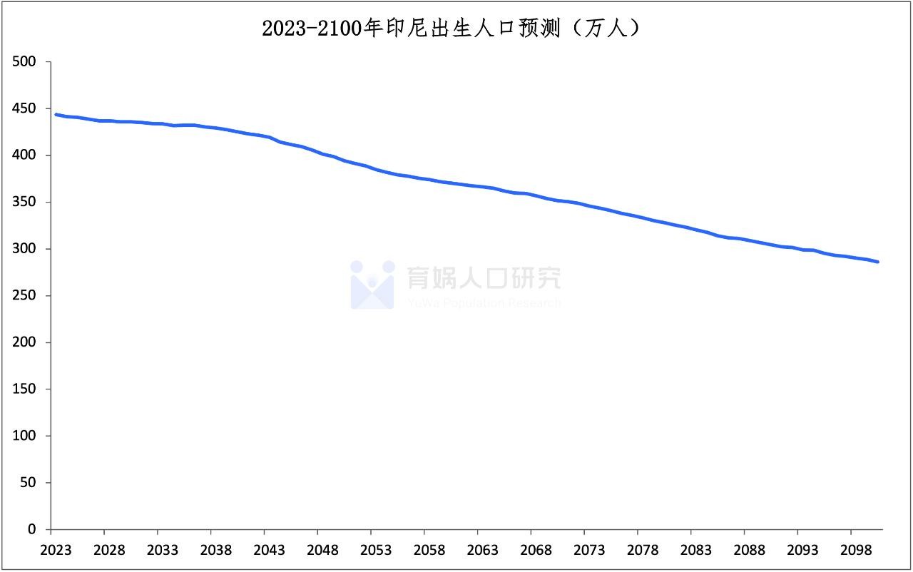 根据上述预测,从2023-2100年,印尼出生人口从443万下降至286万。