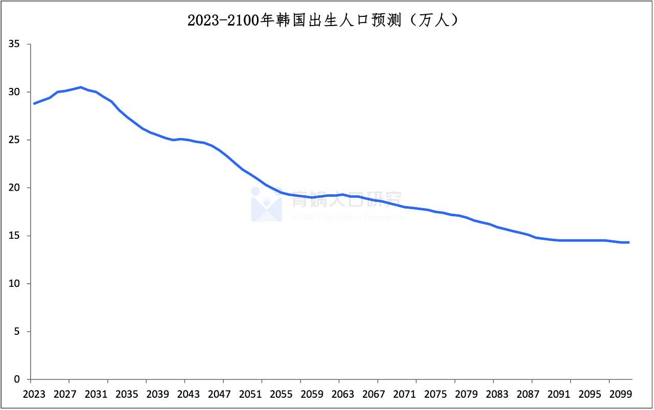 下图是联合国对韩国2023-2100年的出生人口预测: