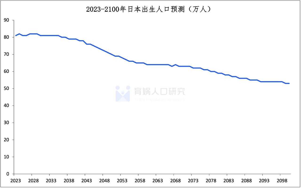 根据上述预测,日本出生人口将于2050年降至70万人,2100年降至53万人。