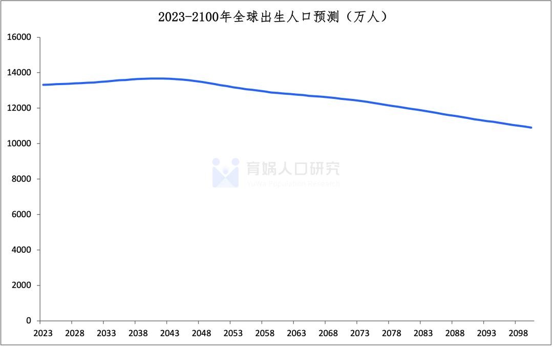 关于本文的数据来源,中国的数据采用育娲人口发布的《中国人口预测报告2023版》,其余国家和地区的数据采用联合国的中方案预测数据。全球出生人口和总人口数据的计算方法是:在联合国的全球人口预测中,减去中国部分,然后加上育娲人口对中国人口的预测数据,从而得到全球人口预测数据。