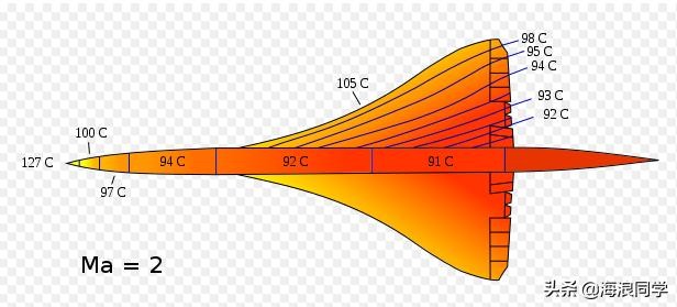 协和飞机在五万余呎高空飞行,机外环境温度约为零下50℃,飞机在超音速飞行时,空气压力和摩擦力会使飞机表面加热,而且飞机不同部分的升温情况也有所差异,并且会在机身表面形成温差。超音速飞机最热的部分除了发动机之外就是机头头锥,协和飞机在飞行时头锥最高温度可达127℃,机身后段也可超过90℃。协和飞机主体材质为硬铝(AU2GN/ASTM 2618飞行器专用铝材[51]),仅在部分需要长时间承受高温的特殊部位,例如升降副翼、发动机短舱等处使用钛合金和不锈钢。铝材在当时已经在飞机制造工业广泛使用,应用经验较多,而且价格低廉、建构容易。硬铝结构稳定,可持续承受达127℃的高温,因此协和飞机的最高速度被限制在2.02马赫,而这个速度是硬铝的高温极限。假如目标速度超过2.02马赫,机体则需要大范围的使用钛合金或不锈钢,大大增加制造成本和飞机重量。