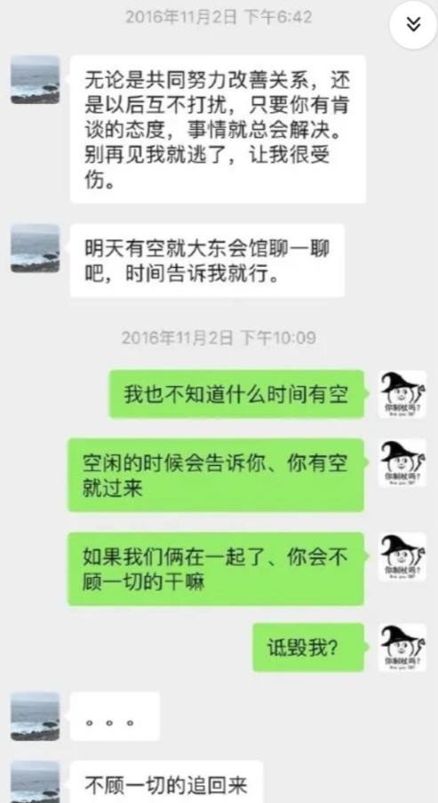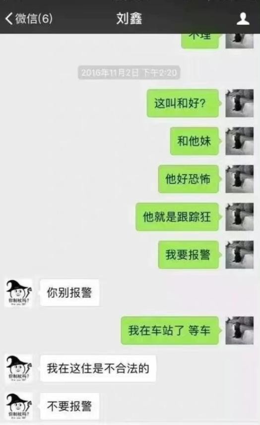 17点左右,陈世锋发微信给刘鑫以私人隐私照片进行威胁,希望复合被拒。江歌于微信中告诉刘鑫让其找店内男同事假扮男友劝走陈世锋。