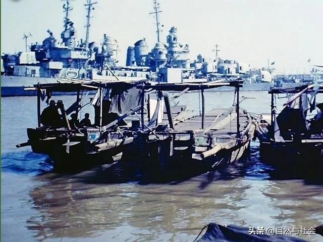 当我们军舰刚驶进上海港时,所见到停泊在黄浦江上的大型轮船及巨大战舰,几平全部都是挂整美、英等国的旗帜。