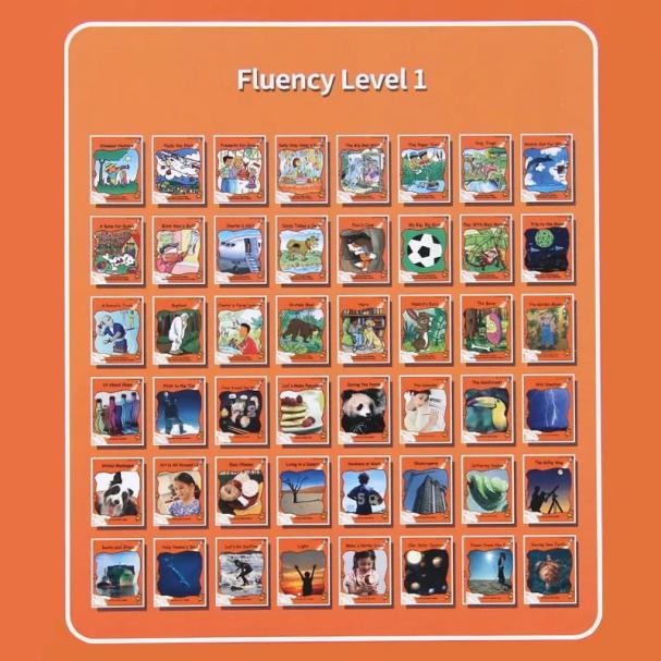 Fluency Level 1包含了故事类24本,科普类24本,每本16页,单本词汇量在240-300之间,适合6-9岁有一定阅读基础的孩子。
