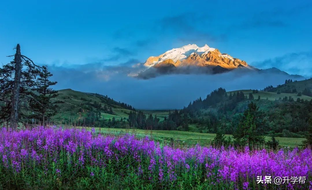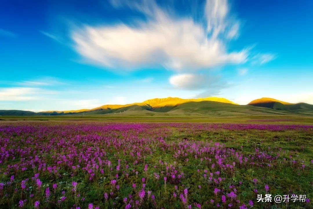 这里干湿分明、夏短冬长,一年日照长达2133.6小时,每年的7、8月份,当遥远的印度洋与广袤的太平洋吹来的季风在这里交汇,温暖湿润的气流让这片草原繁花盛开,熠熠生辉。