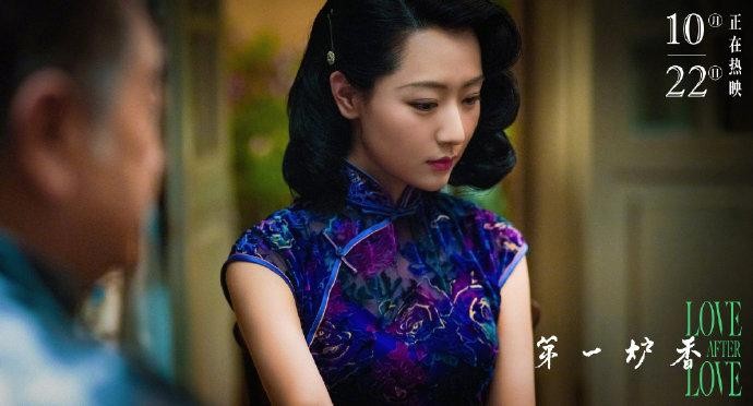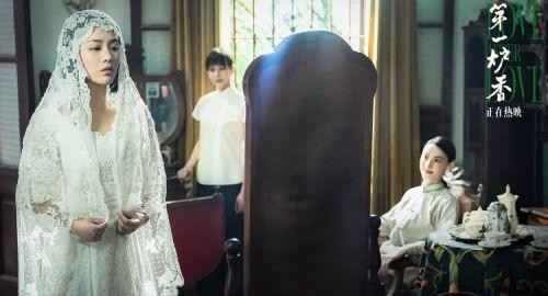 而电影里,大概因为马思纯穿旗袍不好看的缘故,所以基本没有旗袍造型,都是现代化的连衣裙——还都是V领(大概是考虑到马思纯脖子不够纤长),然而依然无法与梁洛施扮演的周吉婕形成双峰并峙的局面。