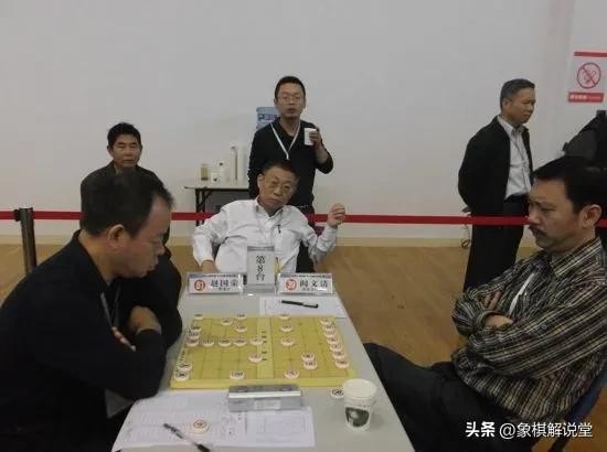 眼看阎文清即将夺冠,许银川当然不敢大意,毕竟在1994年的个人赛上,许银川就因一时大意被小将李雪松怒斩,所以,许银川必然会认真谨慎的对待每盘棋,但许银川肯定也想不到,阎文清竟能在第十轮将棋风稳健犀利的东北虎赵国荣轻松斩于马下。这盘棋执先的阎文清以飞相对赵国荣的过宫炮,在不到14个回合,两个人的车都牺牲了,两人也开始了马炮残局的较量,在第33回合,赵国荣竟突然走出炮5进3打红方中兵的败招,这步棋一走完,赵国荣的局势瞬间变得颇为被动,阎文清抓住战机乘胜追击,赵国荣防不胜防终被生擒,这也是阎文清职业生涯唯一一次赢赵国荣。