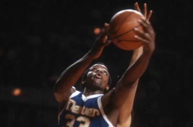 1978年4月丹佛掘金队的主场体育馆内气氛紧张而热烈。这是常规赛的最后一场比赛,掘金队正与底特律活塞队展开激战。