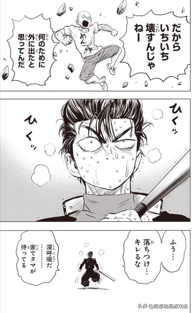 金属球棒这个时候气得青筋暴起,可是让他去跟琦玉老师开战,还是算了吧。想了想,金属球棒努力地压制自己的怒火,灰溜溜准备回家了。