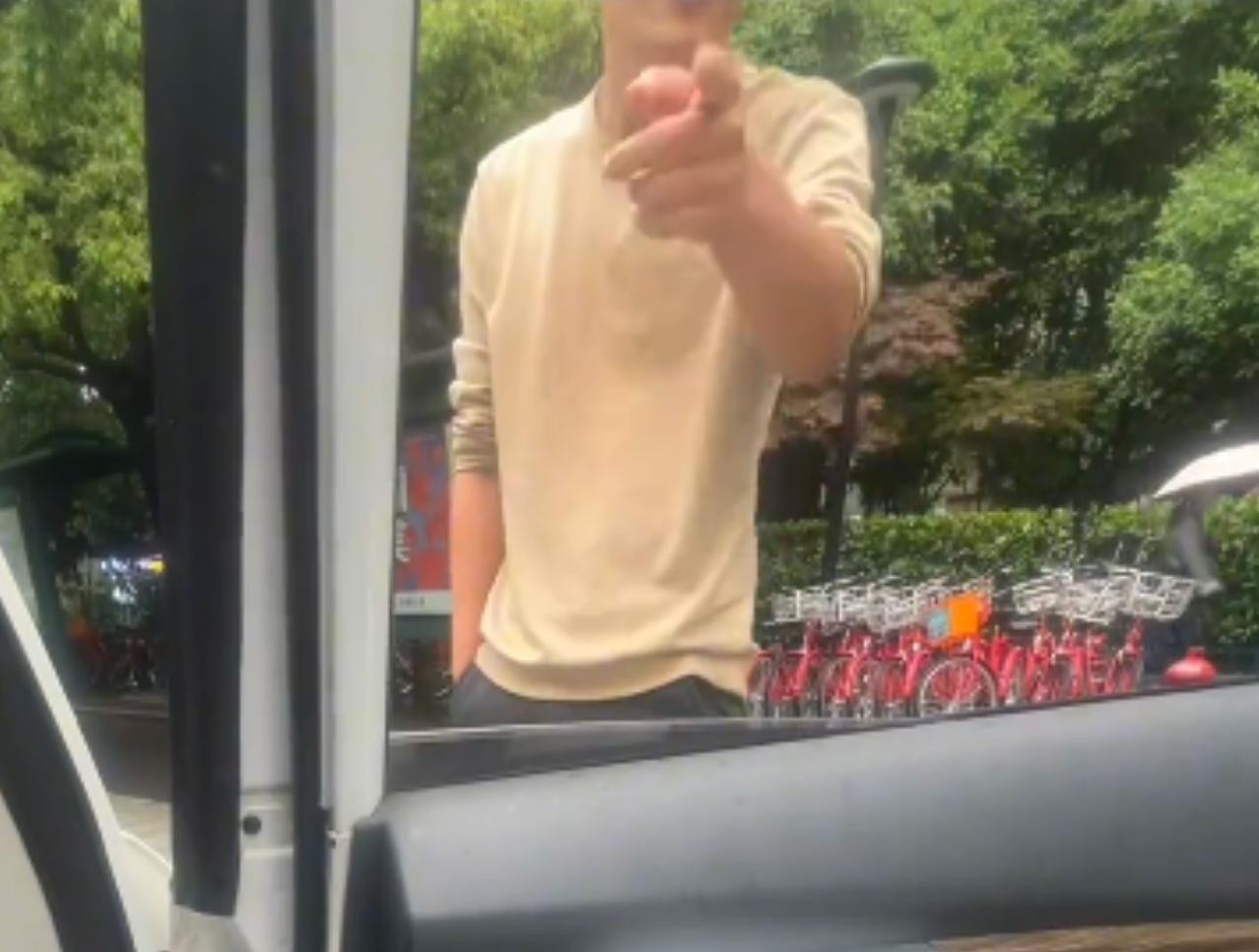 双方吵了几句后,司机竟然叼着烟拉开了后座车门,博主称司机想拽她下车,博主强调了很多声“不要碰我”,由于博主把手机镜头对准了司机,司机也没来硬的,又走开了。