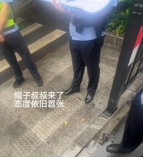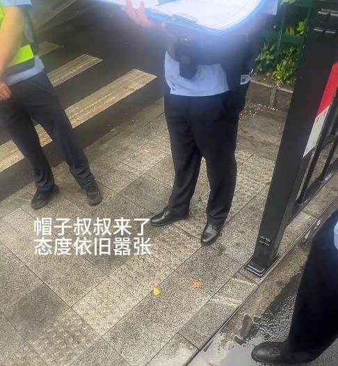 不一会儿来了三个警察,博主向警察陈述完经过,司机则站在一边抽烟,博主要求司机当场道歉。