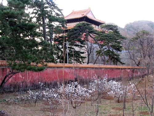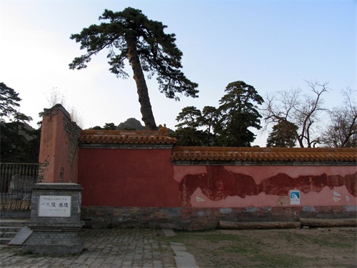 泰陵是明十三陵未向公众开放的一座陵寝,锈迹斑斑的铁栅栏大门紧锁,高大的红色墙体经历了时光的磨砺已黯然失色,让人看着更加感叹岁月的无情,祾恩殿残垣断壁的石阶石台和陵园苍松翠柏,见证了昔日威严和气派的皇家陵寝。
