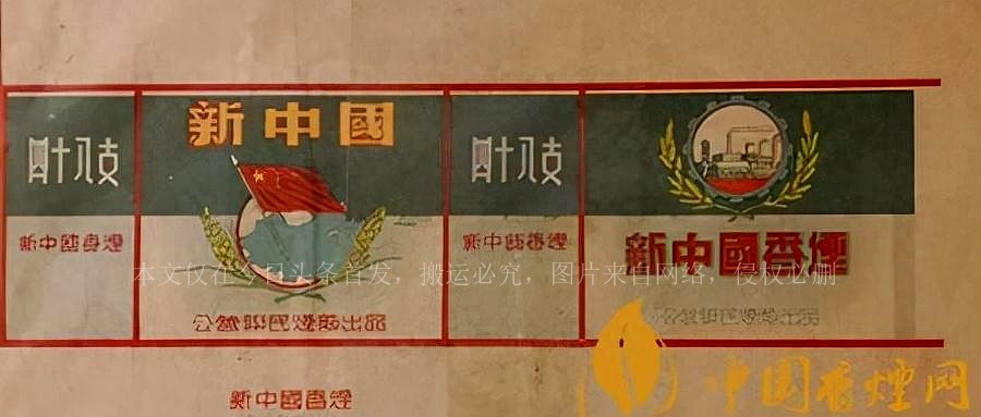 随着新中国的建立,烟标设计也有所体现。新中国牌香烟运用大量繁体字,突显出浓厚的爱国情怀。五星红旗、中国地图、稻穗、齿轮和城市化的图景构成了标志图案的核心。此设计传达了对新中国美好未来的自信。