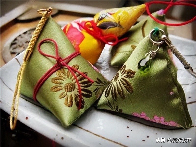 小孩香囊,传说有避邪驱瘟之意,实际是用于襟头点缀装饰。香囊内有朱砂、雄黄、香药,外包以丝布,清香四溢,再以五色丝线弦扣成索,作各种不同形状,结成一串,形形色色,玲珑可爱。在中国某些南方城市,青年男女还用香囊来表达爱意。