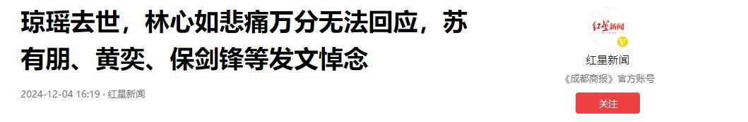 信息来源:琼瑶去世,林心如悲痛万分无法回应,苏有朋、黄奕、保剑锋等发文悼念