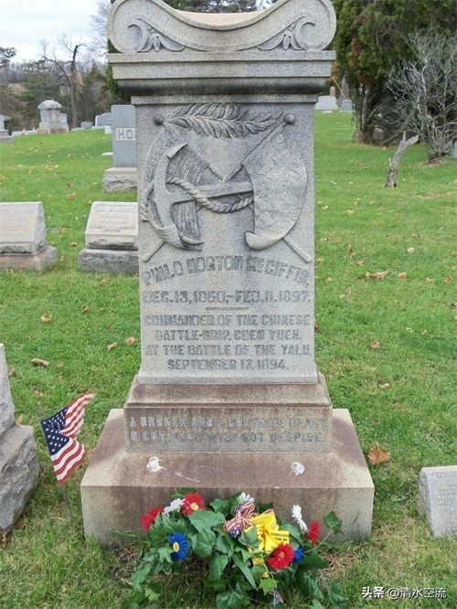 此时的时间是1897年2月12日(北洋水师战败日,提督丁汝昌去世两周年忌日),就在这一天,在美国加州奥克兰的海军医院内,一名三十七的岁的白人男子去世了。他穿着北洋水师海军军服。他是一个地地道道的美国人,但他最后的遗言却是:“我永远都是北洋水师的一员,此生无悔”。在他去世之后,下葬的时候棺木上覆盖的是他从中国带回的曾在黄海海战“镇远”舰上悬挂过的军旗——大清龙旗,且身着北洋水师军服。他的家人根据他的要求,他是的墓志铭是这样书写:This tablet is erected in memory of a Brave Man who loved his own but gave his life for an alien flag.(谨立此碑以纪念一位虽然深爱着自己的祖国,却把生命献给了另一面国旗的勇士)。