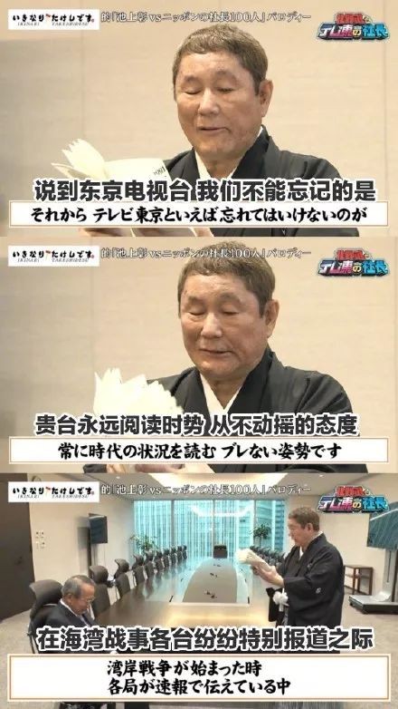 近日,北野武为东京电视台社长进行表彰,这番颁奖词也是耐人寻味。