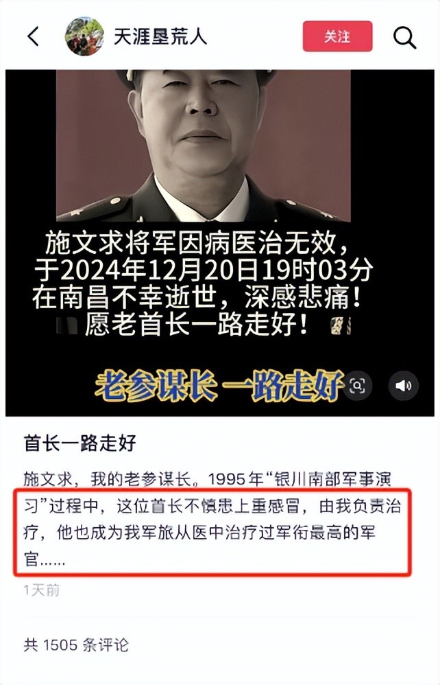 正是如此一位把自己奉献给党和国家的施将军,他却在12月20日因病救治无效,离开了人世,那么施将军离世后大家都在如何吊唁他呢?
