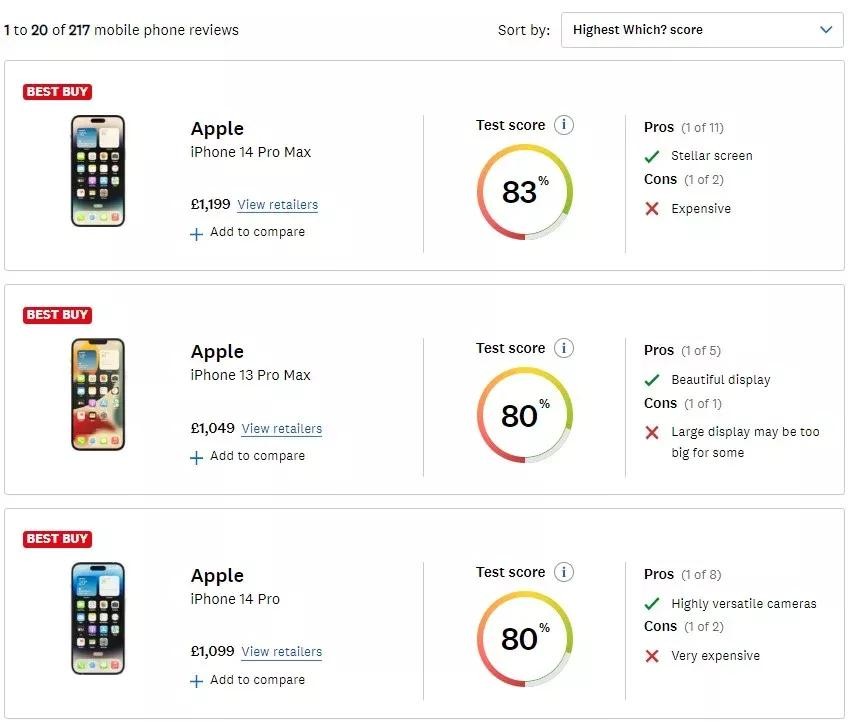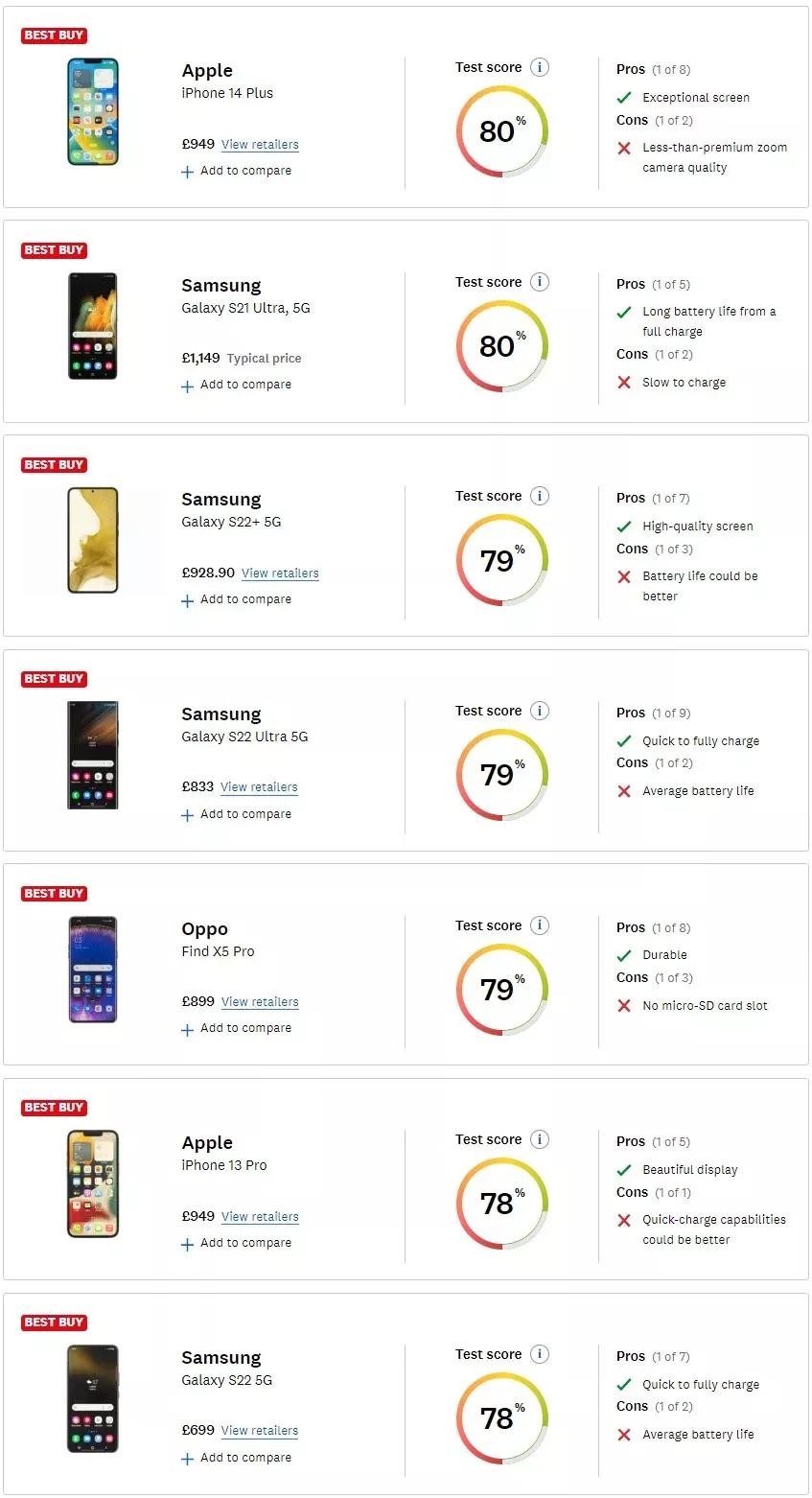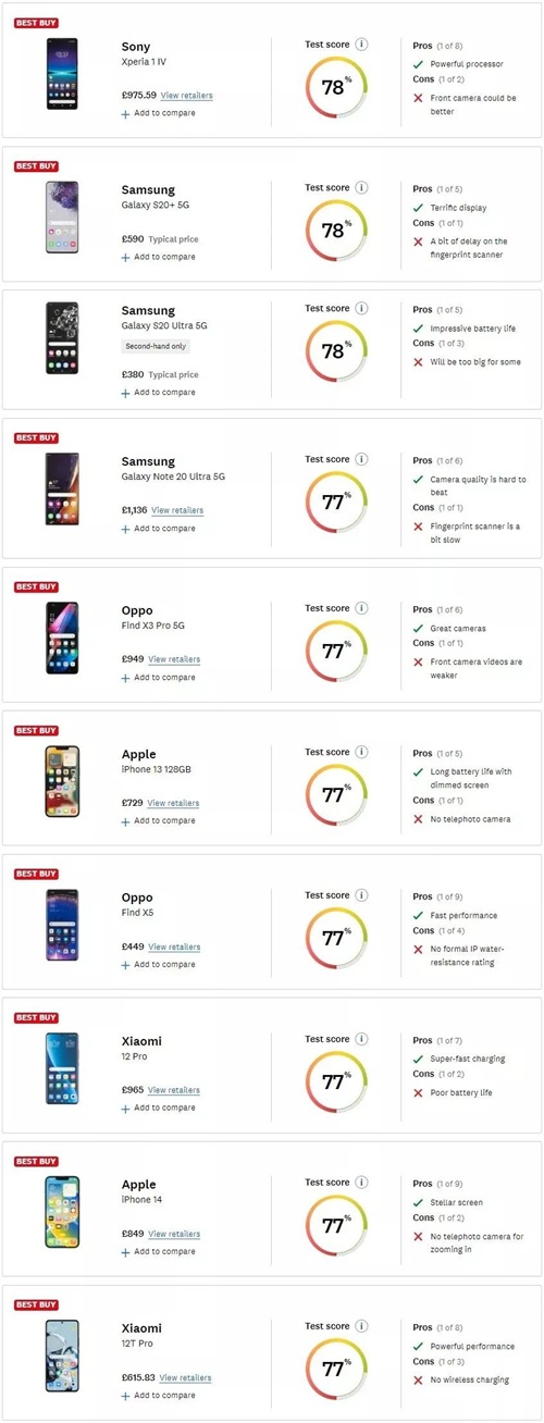 随着智能手机竞争进入白热化,手机的排名也是五花八门,前一段时间,英国著名消费者测试机构“Which”,通过了一项实验测试,找出了全球最佳的20款智能手机,结果让人有些意想不到。