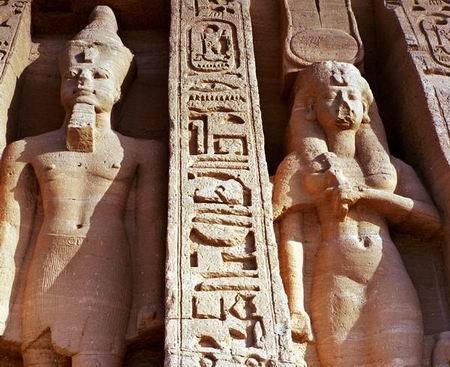 图 2为神庙中的拉美西斯二世与奈菲尔塔利的雕像