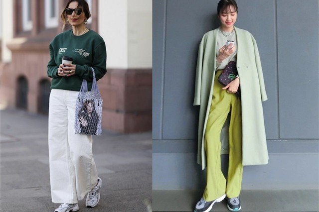 右图:整体用不同绿色来搭配,温柔的绿色,搭配起来出奇的轻松,将鞋子选择灰色的运动鞋,也可以变得漂亮的休闲风格。