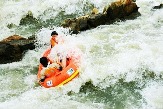 金华龙潭大峡谷漂流景区最具特色的游览项目是漂流,坐上皮筏,急流险滩,一路乘风破浪,尽情感受“中流击水,浪遏飞舟”的感觉,让您体验惊、险、幽、奇的乐趣。