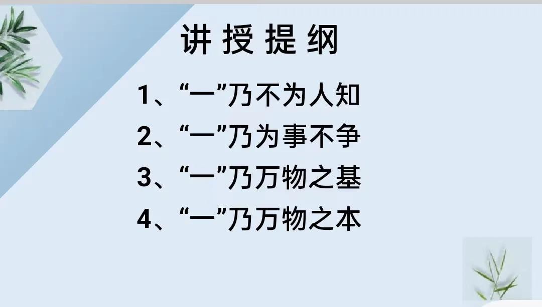 众多《道德经》讲授者大多能很清晰地讲授什么叫“道”?什么叫“德”?什么是“有”?什么是“无”?却很难讲清什么是“一”。