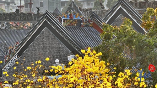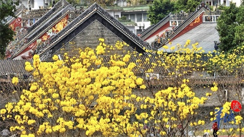陈家祠东广场的黄花风铃木灿烂绽放,让人心醉神迷