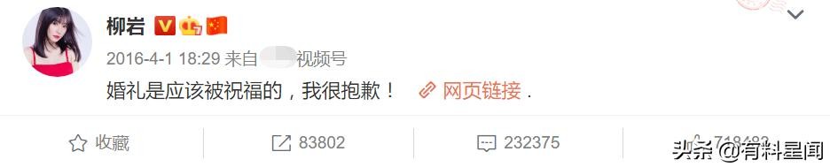 本以为包贝尔等人会向柳岩道歉,但没想到首先等来的却是柳岩这位受害者的道歉视频,在视频中,柳岩为弄砸了好友婚礼表示了歉意。