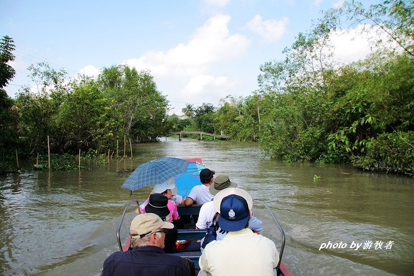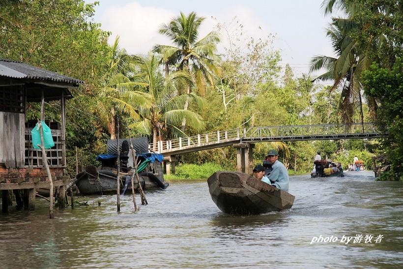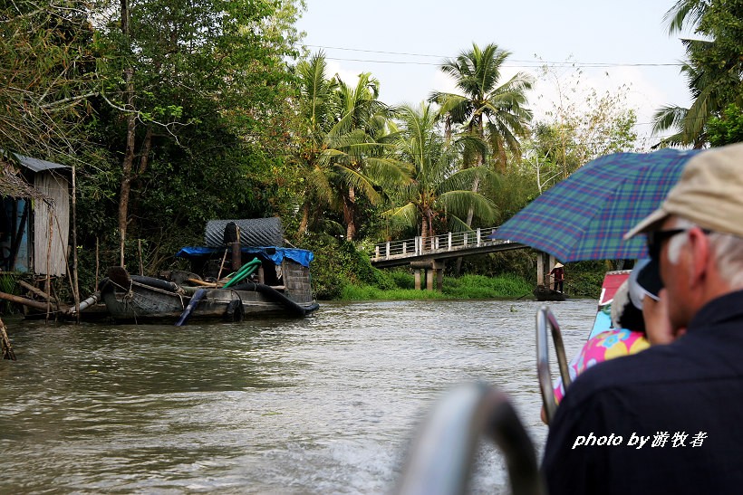 我们的游船在湄公河支流中缓缓行驶,岸边不时会出现一些当地居民的房屋,岸上很多越南人在向游船上的人频频挥手致意。