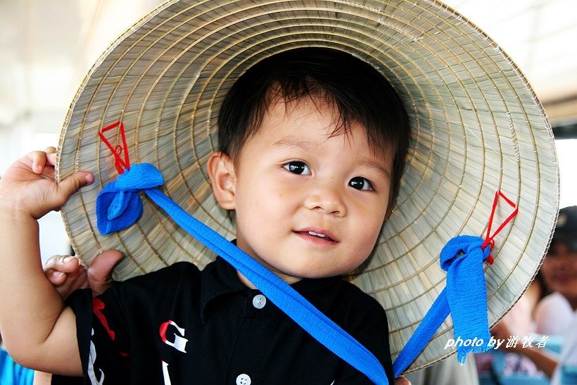 越南小男孩非常乖巧,看到我们要给他拍照,便拿起一顶斗笠戴在了头上供我们拍照。