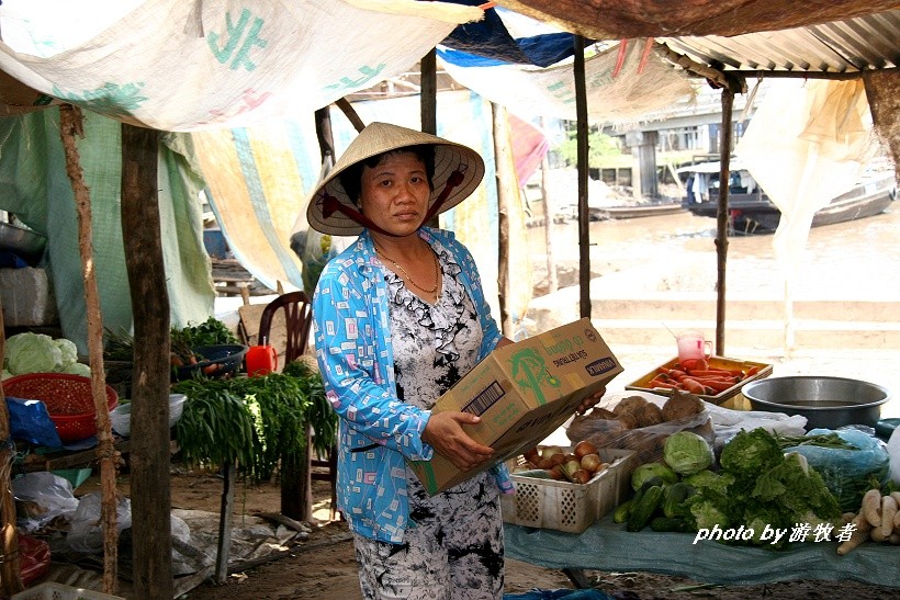 湄公河岸边有很多洗衣服和洗菜的妇女,对于生活在湄公河三角洲的越南人来说,湄公河就是他们的一切生活之源。