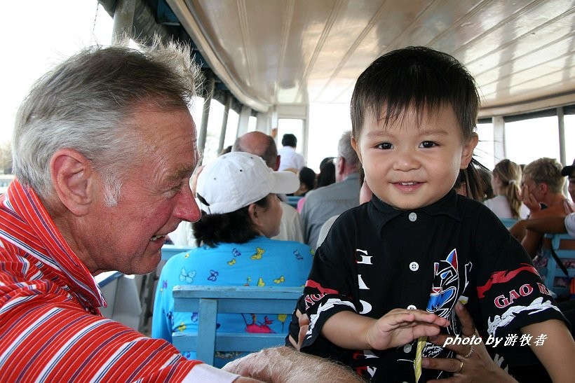 在湄公河三角洲中心城市芹苴市报名参加了一个湄公河旅游团。我在游船上看到了非常有趣的一个场景,一位曾经参加过越战的美国老兵和一位越南小男孩成为了一对好朋友。