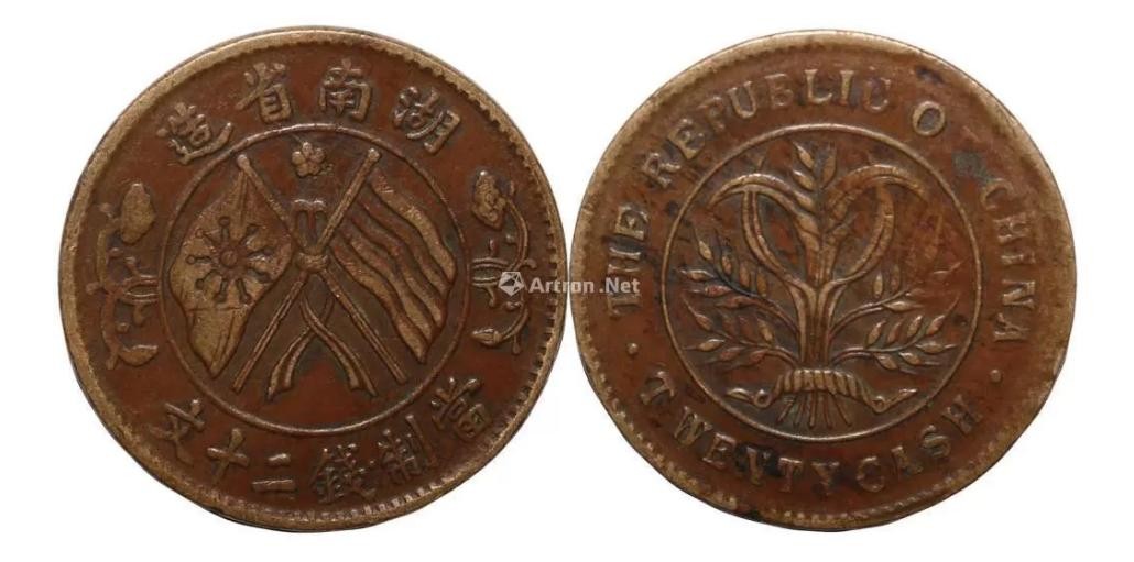 藏品名称:湖南省造双旗币当制二十文