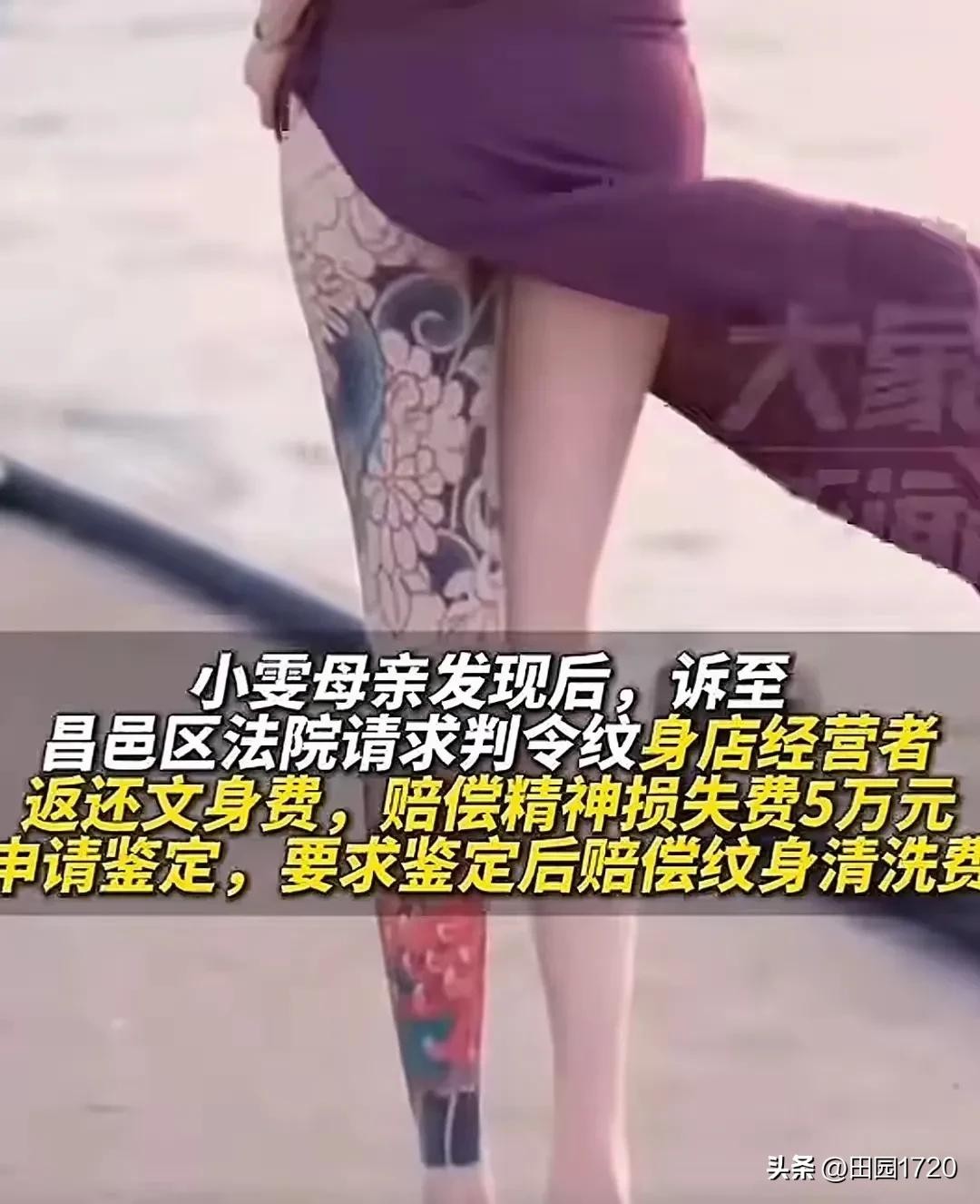 14岁少女花150元纹身,其母亲向店主索赔76万多清洗费,法院判了