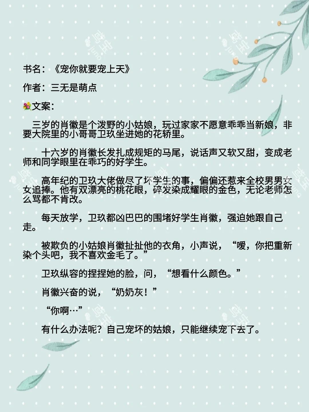 作品简介:#宠文小说推荐#