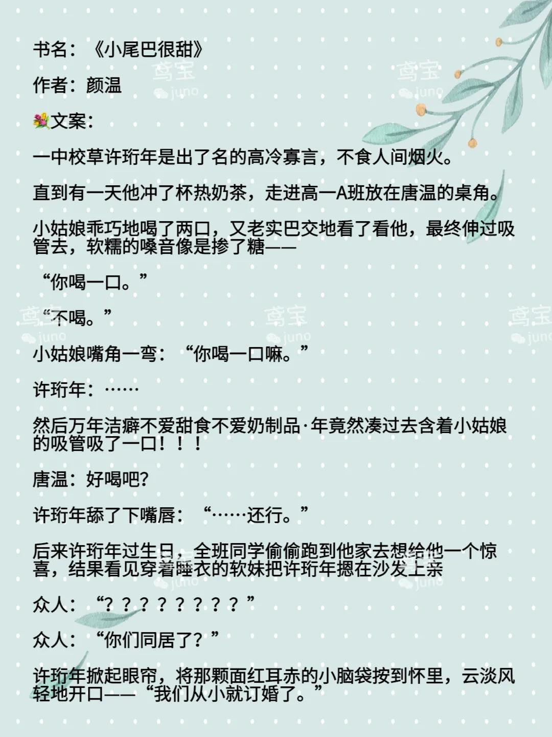 今天给大家推荐的是青梅竹马校园小甜温