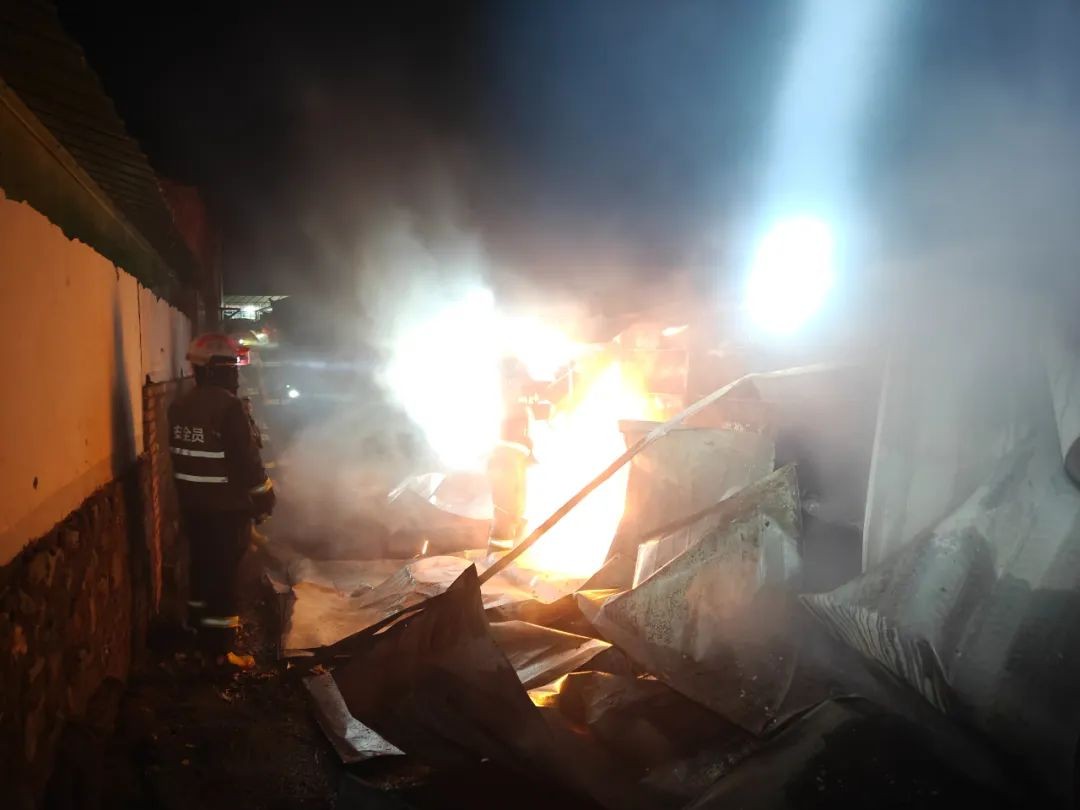 消防员到达现场,经侦察发现,现场为一彩钢板房起火,现场火势处于猛烈燃烧阶段。指挥员随即下达战斗展开命令,利用单干线双出水进行处置,现场火势得到控制后,消防员继续对余火进行清理,经过一个多小时紧张救援,现场火势被扑灭。