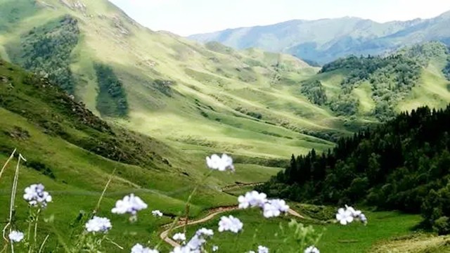 夏尔西里地处新疆博乐市北部山区,翻过阿拉套山就到了,第一次来到这里的客人,会被这里草甸上盛开的百余种野花所吸引和震撼。这里仿佛一个人间仙境:山花烂漫,蜂飞蝶舞,在丛林,雪峰,白云,蓝天衬托下,满世界的姹紫嫣红,构成一幅旖旎的锦缎。