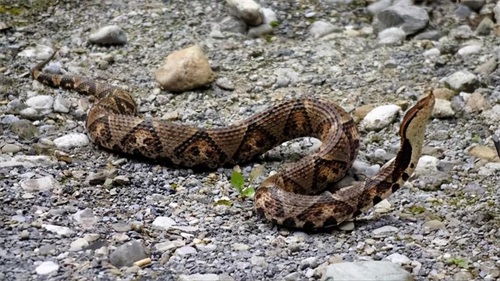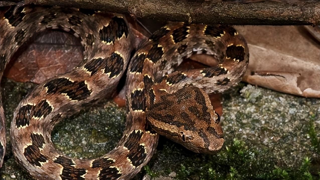 五步蛇没有明显的性别二态性外部特征,雌蛇体型稍大,尾部末端呈钝形,而雄蛇的尾部末端较尖。属于卵生爬行动物,即通过产卵来繁殖后代。它们的交配不受季节限制,通常表现出自主选择配偶的行为。雄蛇会通过追逐、舔舐和挑选等方式来吸引雌蛇的注意。