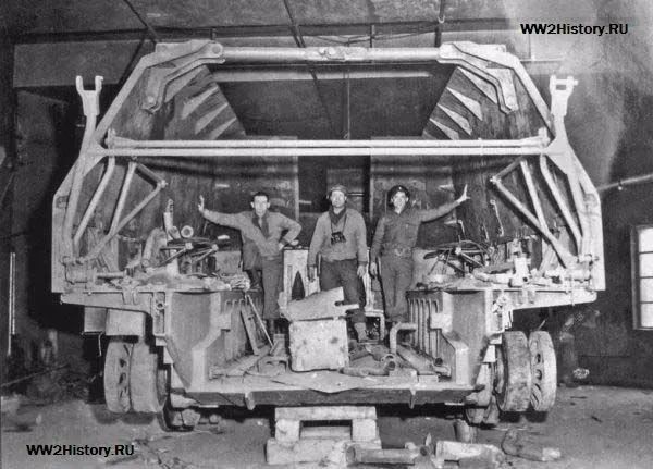 但是留给第三帝国的时间已经不多了,仅仅4个月后,美军就占领了哈尔斯滕贝克,美国人惊奇的发现这里堆满了各种装甲车辆的原型和部件,他们将这里称为德国的诺克斯堡(美国陆军装甲兵之家),而组装了不到一半的虎式自行火炮原型车,就静静地躺在车间里。随后赶到的英国人在这里拍摄了不少的影像记录: