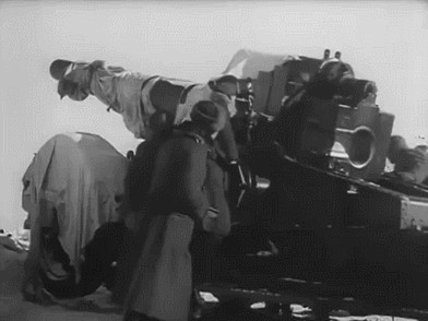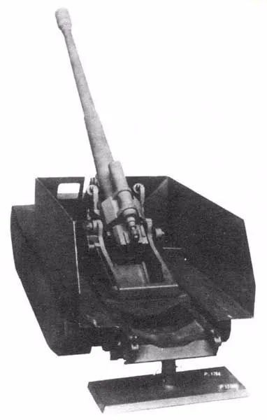 而虎式自行火炮实际上不仅可以当作自行火炮,它还可以当做“机动炮架”,即把火炮驼载到预定射击位置,然后将车体上携带的火炮给“抽”出来安放在地面上。安放在地面上之后,170mm火炮就可以把炮身正下方的圆形基座当成转台,火炮可以在这个转台上进行旋转,借以获得全方向的射界。这并不是在“虎式自行火炮”上才有的独创设计,这个炮架本来克虏伯就是这么设计的,只是现在可以装进车里,折叠起来的时候就是下图的“行军状态”:
